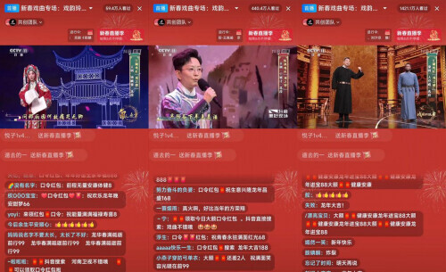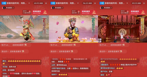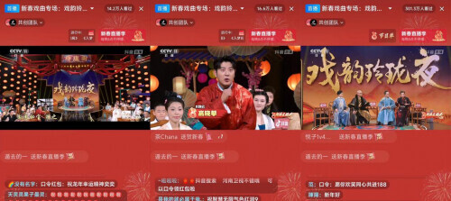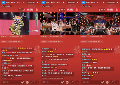 2月9日除夕夜19:30,由抖音携手中央广播电视总台戏曲频道共同打造的《戏曲玲珑夜》新春戏曲专场在CCTV-11播出。王珮瑜、李军、奚中路、小香玉等戏曲名家,以及甄妮刀马旦、汪氏皮影、方浩然口技等12位抖音传统文化主播和达人在晚会中亮相,为观众献上了四十多个戏曲及传统文艺表演节目。晚会此前已于2月7日在抖音首播,获得了直播间近1600万网友观看。