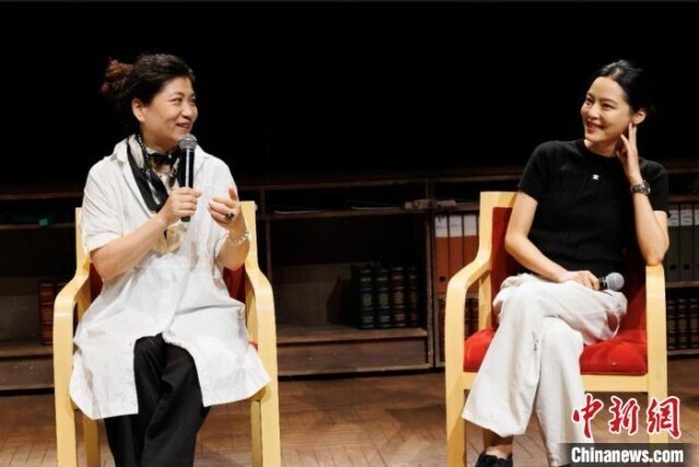 导演周可(左)和演员辛芷蕾在对谈中。 蔡园 摄