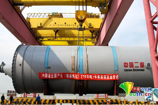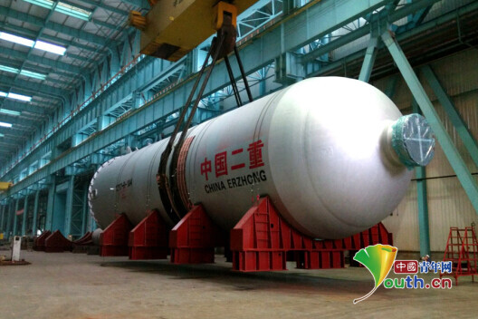 为中石化金陵分公司承制的200万吨年渣油加氢反应器。隆敏 摄