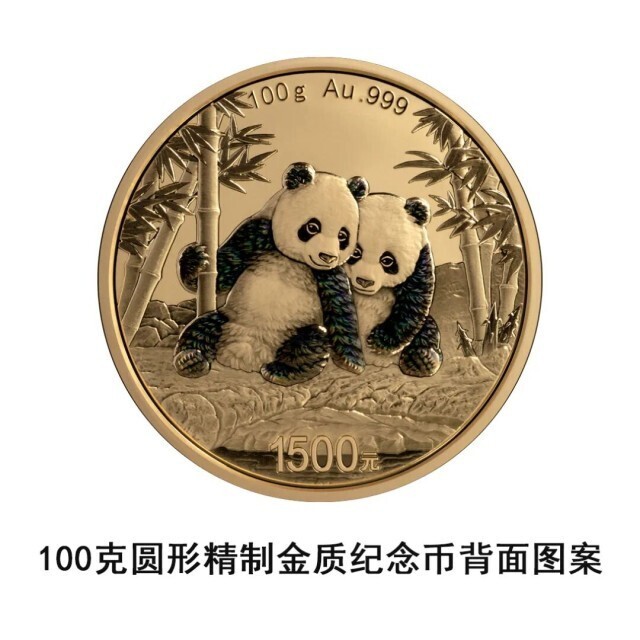 (十)100克圆形金质纪念币为精制币,含纯金100克,直径55毫米,面额1500元,成色99.9%,最大发行量30000枚。