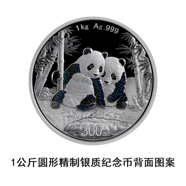 (十二)1公斤圆形银质纪念币为精制币,含纯银1公斤,直径100毫米,面额300元,成色99.9%,最大发行量10000枚。