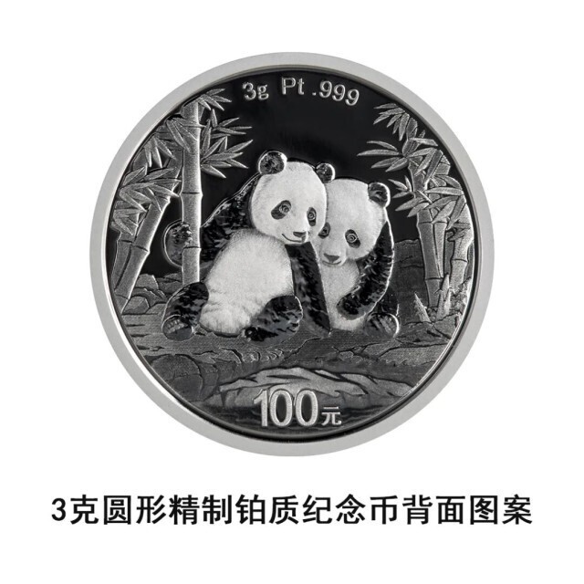 (十五)3克圆形铂质纪念币为精制币,含纯铂3克,直径18毫米,面额100元,成色99.9%,最大发行量10000枚。