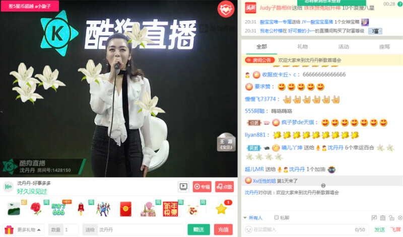 丹丹当晚还给了酷狗网友们一个新年愿望,就是可以随意点歌。顿时公屏上出现了五花八门的歌单,而《单单喜欢你》和《幸福恋人》呼声最高,所以丹丹把这两首歌一一奉上,情感丝丝入扣。在唱完《单单喜欢你》喜欢你之后,丹丹更对粉丝疯狂表白,“我丹丹喜欢你们”随后更对着屏幕比了个心。而在唱《幸福恋人》前,公屏出现了询问丹丹师哥郑源是否会上直播的声音,丹丹则说有机会将会邀请郑源一起直播,不过在这之前,请男粉丝们代替师哥,在屏幕的那头与自己一同合唱这首情歌。哇,这一连串的撩粉操作简直犯规!