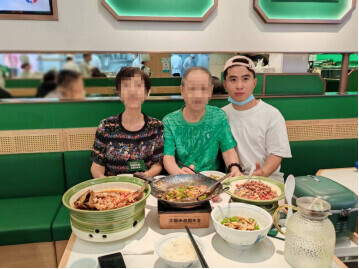(图注:张南与叔叔阿姨一起吃饭)