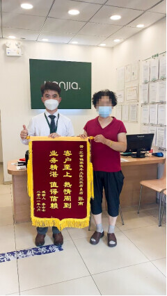 (图注:客户李女士因为张南热情周到的服务送来锦旗)