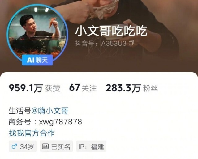 开启首场直播前,小文哥全网粉丝超1000万,其中抖音粉丝280万,包括紫阳海鲜楼的老板本人,也是小文哥的忠粉。
