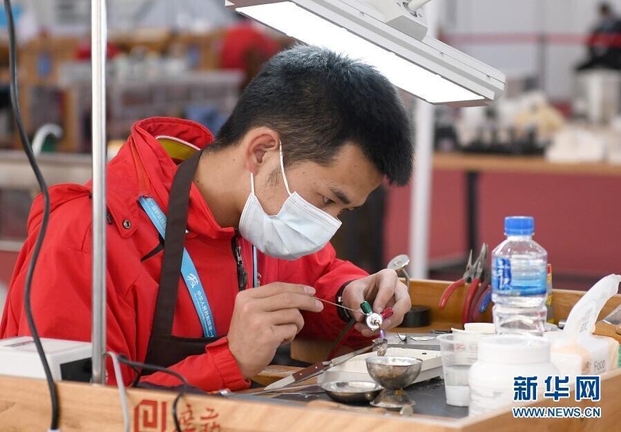 选手在珠宝加工项目比赛中(12月10日摄)。新华社记者 卢汉欣 摄