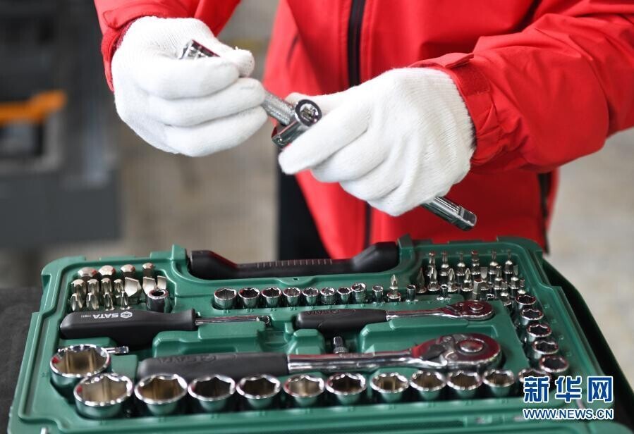 选手在汽车车身修理项目比赛中挑选工具(12月11日摄)。新华社记者 卢汉欣 摄