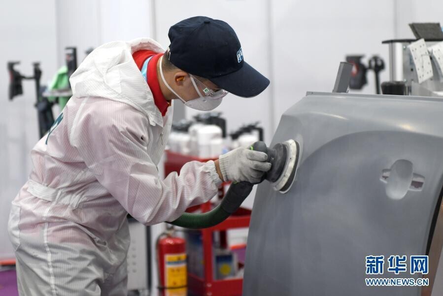 选手在汽车喷漆项目比赛中(12月11日摄)。新华社记者 卢汉欣 摄