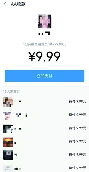 8月29日,记者随机加入两个“吃瓜”群,一个群聊将近2000人,一个500多人,群聊均为全员禁言状态。在加群后一小时内,还不断有新网友加入进来。记者发现,这些群聊只是一个中转群,群聊公告中有一张付款码,想进真正的“吃瓜”群,需要扫码付款9.99元。