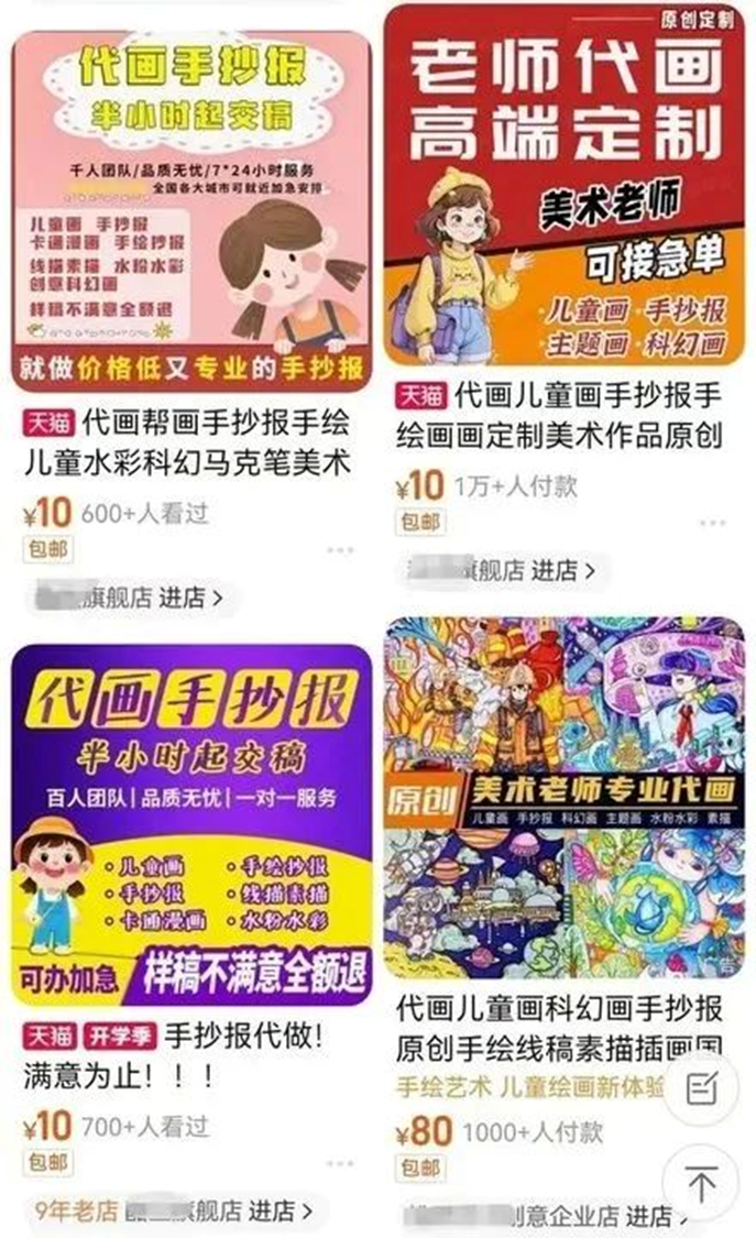 学生机械应对、家长“疯狂下单”、学校和老师忙着把收到的作业整理为成果材料……当每一方主体都只注重结果时,手抄报作业原有的教育意义,反而在无形中被淡化了。可想而知,当画手抄报成为让学生疲于应付的强制性任务,而他们又并未在日常课程中培养出绘画兴趣,便很容易敷衍应对,或是直接让家长找人“代劳”。