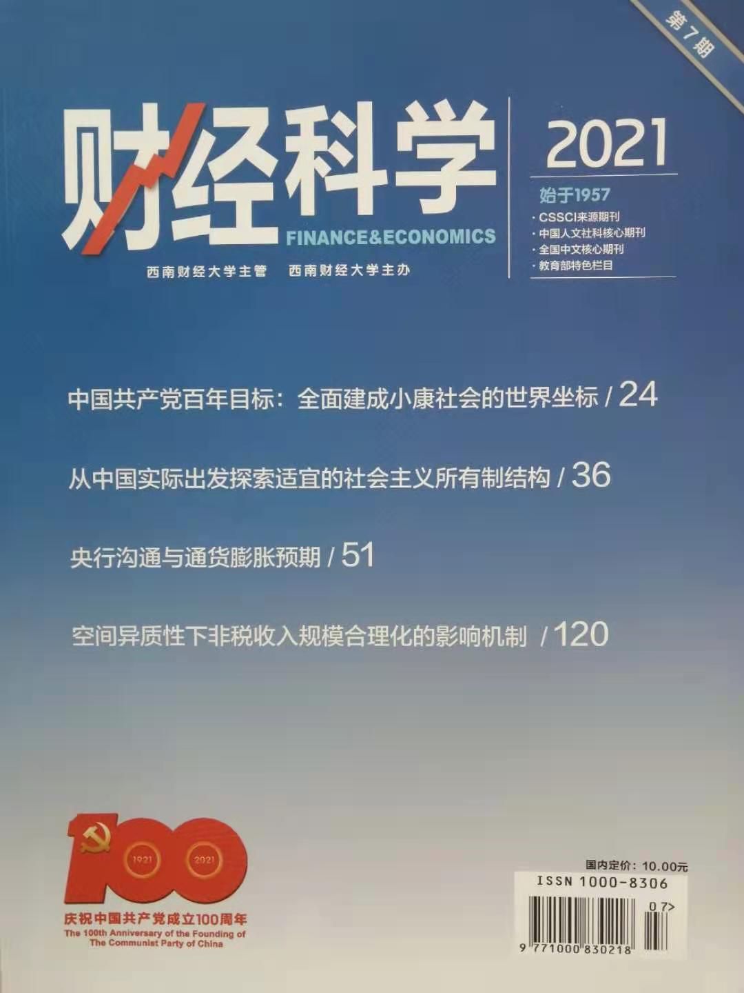 [6]任志江,刘雨薇,邓惠.中国共产党探索现代化道路的百年历程与经验启示[J].财经科学,2021(07).