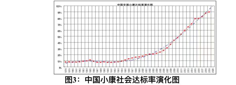 小康社会达标率可作为中国经济发展水平的重要国际参照经济指标。作图如下: