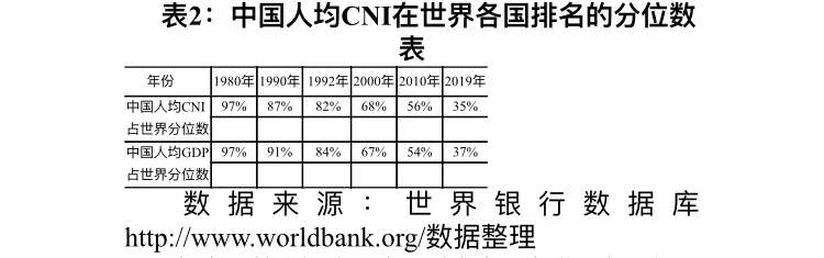 中国实现现代化目标以及中华民族走向伟大复兴有几个重要关键节点:基本解决温饱、总体小康、全面建成小康社会、基本实现社会主义现代化、全面建成社会主义现代化强国。本文度量了中华民族伟大复兴征程中的几个关键节点中国所处的世界坐标和国际定位,如下表所示。
