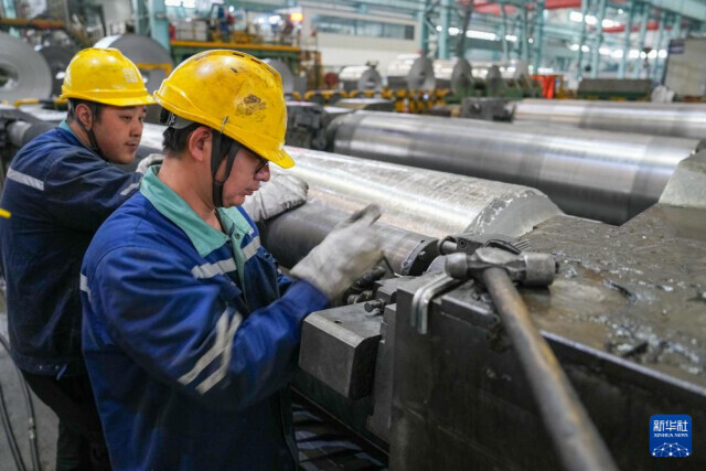 2月26日,在位于江苏省无锡市的银邦金属复合材料股份有限公司,工作人员在生产车间操作设备进行生产。