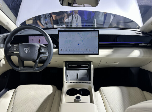 内饰方面,新车采用对称式布局,提供皓月米和玄空灰两种配色方案。中控台的黑色饰板集成了氛围灯带和贯穿式出风口,8.8英寸全液晶仪表隐藏在这块饰板中,搭配怀挡设计,加上12英寸W-HUD抬头显示,将美观和实用巧妙结合。15.6英寸悬浮式中控屏十分显眼,搭载智能座舱高阶版 - DiLink 100,并接入满血版DeepSeek,支持动态壁纸、全场景智能语音等功能,操作流畅,反应灵敏。此外,车内主副驾座椅均支持通风、加热,还有3挡控温,在这个价位来说,诚意很足。