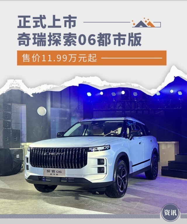网通社新车12月6日,奇瑞探索06都市版正式上市,新车共推出2款车型,售价区间11.99万-12.99万元。新车采用了全新外观设计,直瀑式进气格栅,搭配两侧造型锐利的分体式前灯组视觉冲击力十足,整车气势进一步提升。除此之外,还推出了奇瑞探索06悦野版探秘+车型,售价14.49万元。