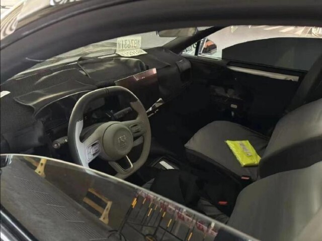 内饰方面,该车同样采用与极氪 007 类似的座舱布局,目前可以看到三幅式方向盘、弧面仪表以及悬浮式中控屏。