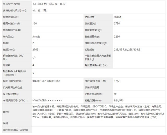 车身尺寸方面,新车长宽高分别为4663/1860/1610mm,轴距为2766mm。动力方面,大众ID.UNYX 与众基于MEB平台打造,新车将搭载前后双电机,前后电机最大功率分别为80千瓦和170千瓦。电池方面,新车匹配由宁德时代生产的三元锂电池组。