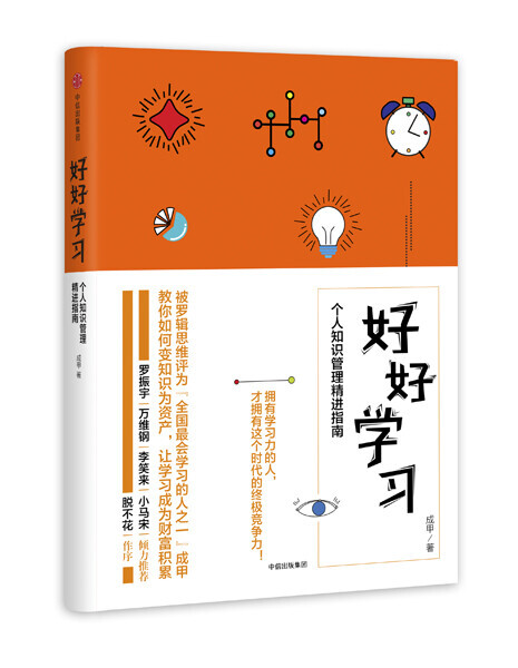 此外,在过去6年里,我坚持每年阅读不少于100本书,同时还保持了每天2小时晨修反思的习惯。这对我理解知识管理的高效输入,有极大帮助。与此同时,我又是一个“好为人师”、不断寻求在输出中加深认识的人。从2009年开始我就组织“知行社”进行分享(2012年停办),2012年在第九课堂开设“个人知识管理”课程,学员评分的满分为10分,而我的课程平均得分高达9.95分,成为九课得分最高的课程,以及再后来,我在罗辑思维“得到”上开设《成甲说书》,开始以每周一本书的高强度进行知识输出。这些知识输出的经验,又让我对理解知识管理核心要点有了更多自己的认识。同时,我不是一个职业培训师,并不靠知识管理培训讲课为生,因此我写书和讲课也不担心泄漏课程核心内容;相反,我一边在自己的公司中大量实践和改进着我所讲的方法,一边期待看到更多人加入这一事业,一起推动我们对知识管理的进一步深入认识。我想,我的这些经历和背景,让我能够把学习“学习”这件事情从不同的角度讲清楚,并用实战的方式让大家理解。这种形式,能让更多人有机会在生活、工作、创业中亲身感受这一认知变化带来的积极影响,就像我第一次用这个方法写文案时感受到的神奇一样。