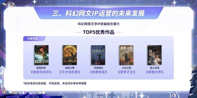 白皮书认为,《故障乌托邦》《天才俱乐部》《伪像报告》《普罗之主》《黄昏分界》等5部网络文学作品具备较强的IP改编潜力。