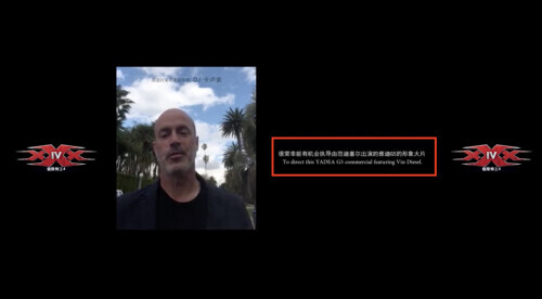 今年年初,雅迪拍摄了首支TVC,这支TVC的导演来头可不小——《极限特工4》的导演卢卡索,而这也是雅迪和范迪塞尔继签约合作后的第二次“亲密接触”。作为《极限特工》系列电影的主角,范迪塞尔凭借高质量的演出一次次征服着观众。从2002年的第一部,到据传正在拍摄的第四部,《极限特工》系列电影的每次上映都引人关注,而且第四部还有王源、张蓝心等国内新生代明星加入,并将推出同名系列电视剧。可以想象,这样一部电影播出后必将再次火爆。