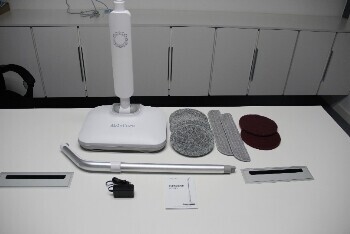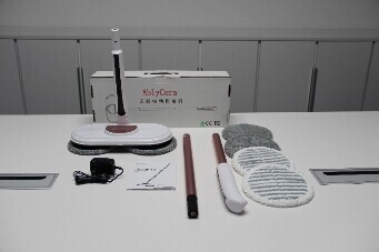 产品外包装上印有无线电动拖地机,说明书、充电器、电动拖把、拖布,将手柄插入主机,水箱加上水就可以了。我们在办公室试了试,不用清洁液也能轻松快速的把地面拖干净,这是我们目前见到的最有效的产品了。