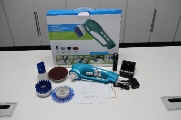 第三件电动清洁刷我们打开包装装上电池,功能很多,基本上日常生活需要清洗的地方都能用上它,特别是家里真皮沙发用它来清洗保养真是方便。因为功能太多,我们也不一一介绍了。