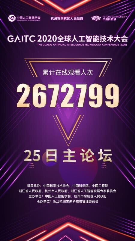 7月25日,2020全球人工智能技术大会(以下简称“2020 GAITC”)在杭州未来科技城拉开帷幕。大会首日,超260万人次通过云端参会,近距离领略了大会风采。本届,将有包括15位国内外院士在内的超百位人工智能界知名专家、学者、企业家齐聚盛会,围绕人工智能的理论突破、技术变革、应用创新、产业融合、规范建设等议题展开探讨,把脉新时期人工智能发展新动向。