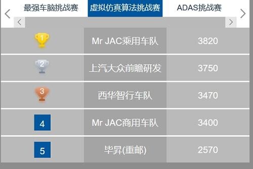 江淮乘用车队赢得虚拟仿真第一名