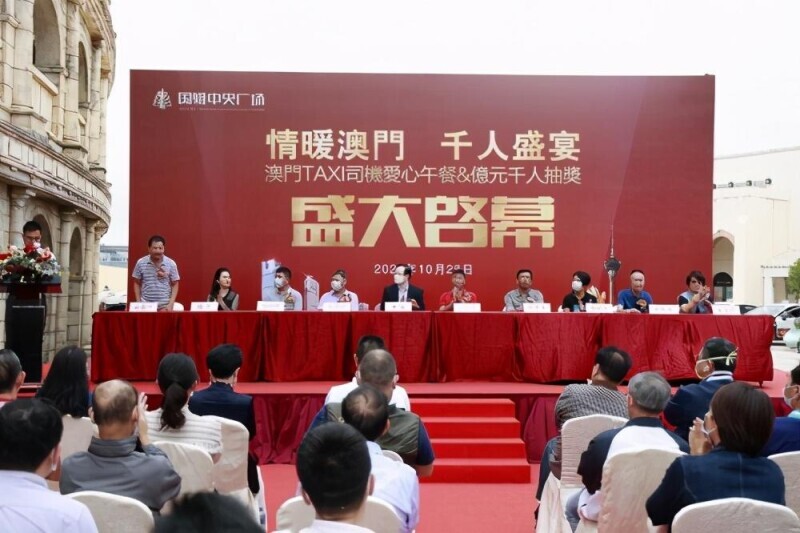 10月28日上午11:00,珠海国维中央广场主办的“情暖澳门,千人盛宴”——澳门TAXI司机爱心午餐&亿元千人抽奖盛大启幕活动在澳门渔人码头罗马表演场外围顺利举行。