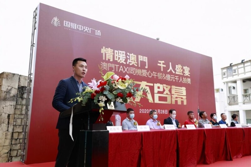 活动开场,国维中央广场营销总监刘波首先上台致辞:“国维集团今年8月在珠海正式发起「的士司机365天免费爱心午餐」公益活动,此次在澳门设立的哥饭堂,希望澳门的士司机同享爱心午餐,同时向社会传递公益力量。”