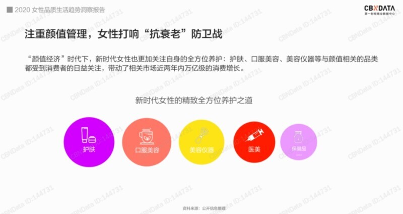根据CBNData发布的《2020女性品质生活趋势洞察报告》指出,近两年内,与颜值相关的品类带动万亿级的消费增长。