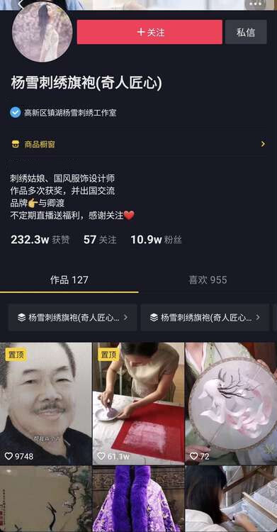 即使不露脸,网友们的参与度也超乎杨雪的想象。她曾经办过一场8小时的直播,有粉丝从头跟到尾。更多人则表示想购买她的刺绣,催促她上架产品。有网友留言表示:“这样的手艺人值得花钱保护!”她惊喜于抖音粉丝对购买的热情,未来也将在抖音商品橱窗上架更多创意产品,让更多人领略苏绣的魅力。
