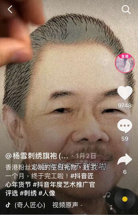 所幸,漫长而艰苦的学习过程没有磨灭杨雪对苏绣的初心,现在的她依然享受刺绣的过程。与以往不同的是,在给抖音客户定制人物绣像的过程中,杨雪还收获了另一重温暖坚定的力量。在她的一条视频中,一位香港姑娘为了给父亲庆生,向她加急定制了一幅绣像。香港姑娘说,2020是充满坎坷的一年,希望爸爸收到这个礼物可以开心些。杨雪听了非常感动,起早贪黑地绣了一个月,为这位素昧平生的陌生人赶制了一份饱含祝福的礼物。