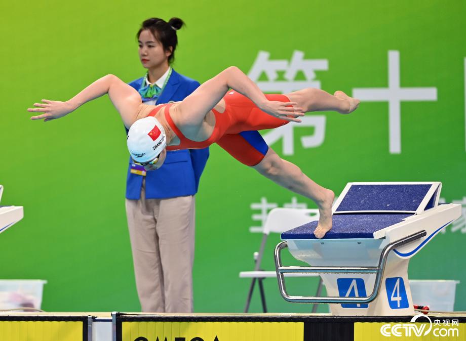 北京时间9月20日晚,在西安奥体中心游泳跳水馆进行的第十四届全运会游泳比赛,结束了女子100米蝶泳决赛争夺。东京奥运会该项目亚军、江苏选手张雨霏以56秒24获得冠军,这是张雨霏第一次获得该项目的全运冠军。福建选手吴雨霖58秒77获得亚军,山东选手王一淳58秒92获得第三。 视觉中国