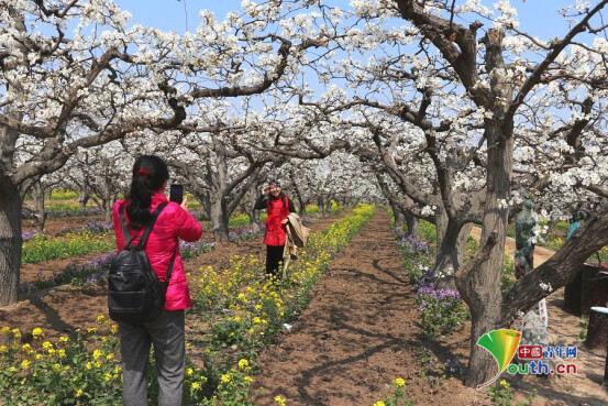中国青年网石家庄4月2日电(记者 张秋红)4月2日,在晋州市第十四届梨花旅游文化节的主场地——周家庄农业特色观光园里,3000亩梨花吐蕊绽蕾,竞相盛开;园子东边400亩油菜花早已竞相开放。据了解,本届梨花旅游文化节将持续至5月10日。