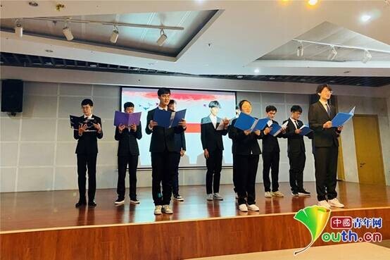 领航团校学员进行主题朗诵,表达对团校学员的希冀。中国石油大学(北京)供图