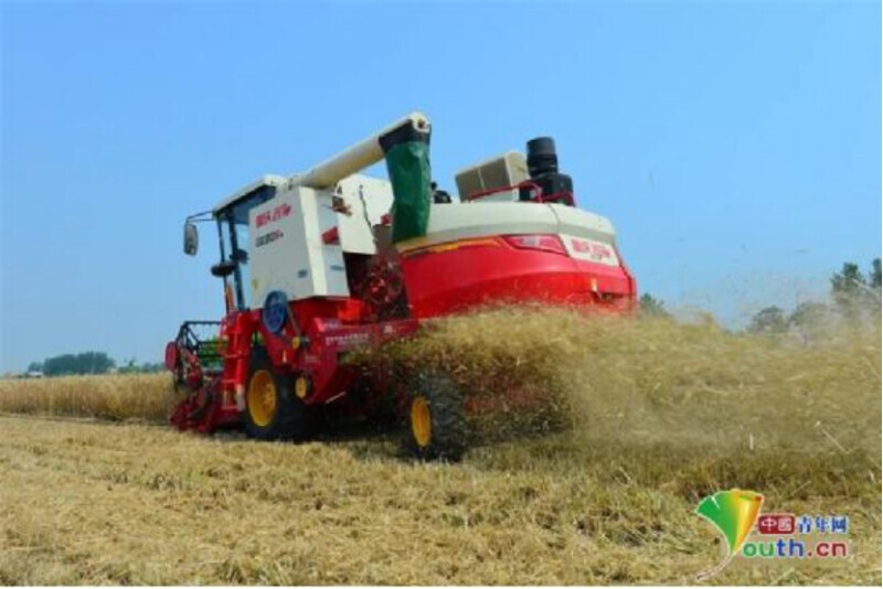 中国青年网周口6月15日电近日,三夏小麦收割进入高峰阶段。河南省郸城县县高标准农田高效节水灌溉示范区小麦开始大面积收割,示范区小麦深受“藏粮于技”的实“慧”,穗大粒饱、喜获丰收,亩均产量在1500斤左右。