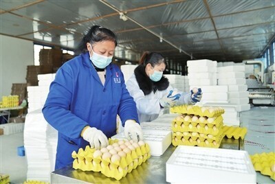 1月1日,在芦溪县芦溪镇葛溪正太全自动化蛋鸡养殖基地车间内,工人们正在紧张地工作。新年第一天,我市众多劳动者坚守岗位,在忙碌中度过元旦佳节。 (许安萍 摄)