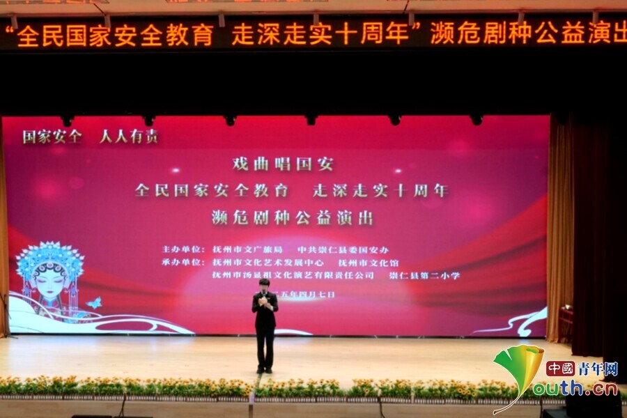 中国青年网讯4月7日,由抚州市文广旅局、中共崇仁县委办公室主办的“戏曲唱国安”公益巡演在江西抚州崇仁县第二小学举行。活动以盱河高腔等非遗艺术为媒,为500余名师生上了一堂独具特色的国家安全教育课。