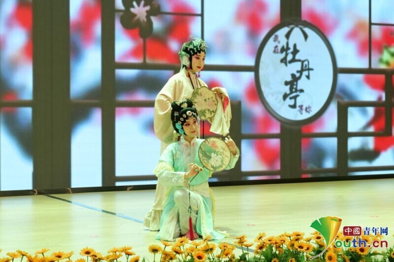 演出现场,盱河高腔特有的“九调十三腔”如清泉击石,在《牡丹亭·游园》选段的重新演绎中迸发时代清音,让青少年在领略传统文化魅力中涵养家国情怀。在盱河戏传统身段与现代编舞相结合的《踏春行》,少年们以足尖丈量家国疆界,用身姿演绎数字时代的攻防博弈,在转身旋舞中展现新时代少年守护国家安全的精神风貌。
