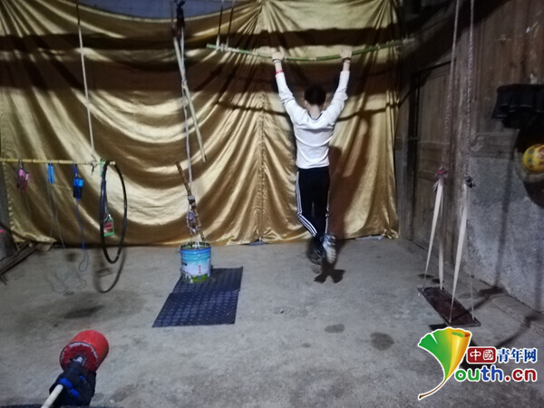 了解到儿子的烦恼后,陈飞飞的父亲建议,在家自建健身房。为了在家里建造健身房,他和父亲准备了很长时间。“因为器材也是一直在更新,每天爸爸也要去做事,我白天也要上网课,基本上就是晚上边制作边锻炼。”