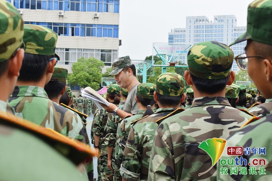 要参加汇演了,每个连的学生和教官都很努力。教官不只是会稍息立正军姿的训练,唱歌他们也是一等一的优秀。一位学生在向教官请教一首军歌如何唱。中国青年网通讯员 曹晓宇 提供