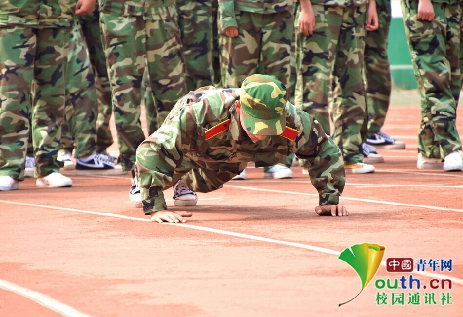 天气很热,厚厚的军训服,湿湿的黏在身上。但做错事就要接受惩罚,俯卧撑不在话下。中国青年网通讯员 曹晓宇 提供