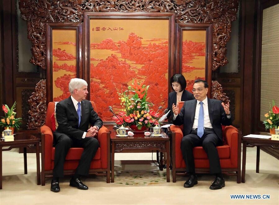 Chinese Premier Li Keqiang on Tuesday encouraged Michigan and other U.S. states to enhance exchanges, two-way trade and investment with China's provinces to create more opportunities and jobs for both sides.