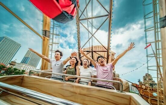 年轻游客在广州融创乐园“嗨玩”海盗船项目