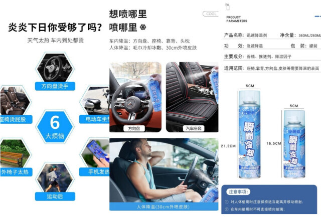 记者向一家生产降温喷雾的工厂咨询,厂长陈先生告诉记者,加压类的降温喷雾,也就是消费者在市面上看到的金属气雾罐样式的产品,一定是易燃易爆品,这类喷雾的主要成分可能包括丙烷和丁烷高压液化气,能瞬间汽化、吸收大量的热,让物体表面迅速降温,这些产品的包装上往往会提示消费者注意烟火和高温,但通常不会明确标注易燃易爆标识。