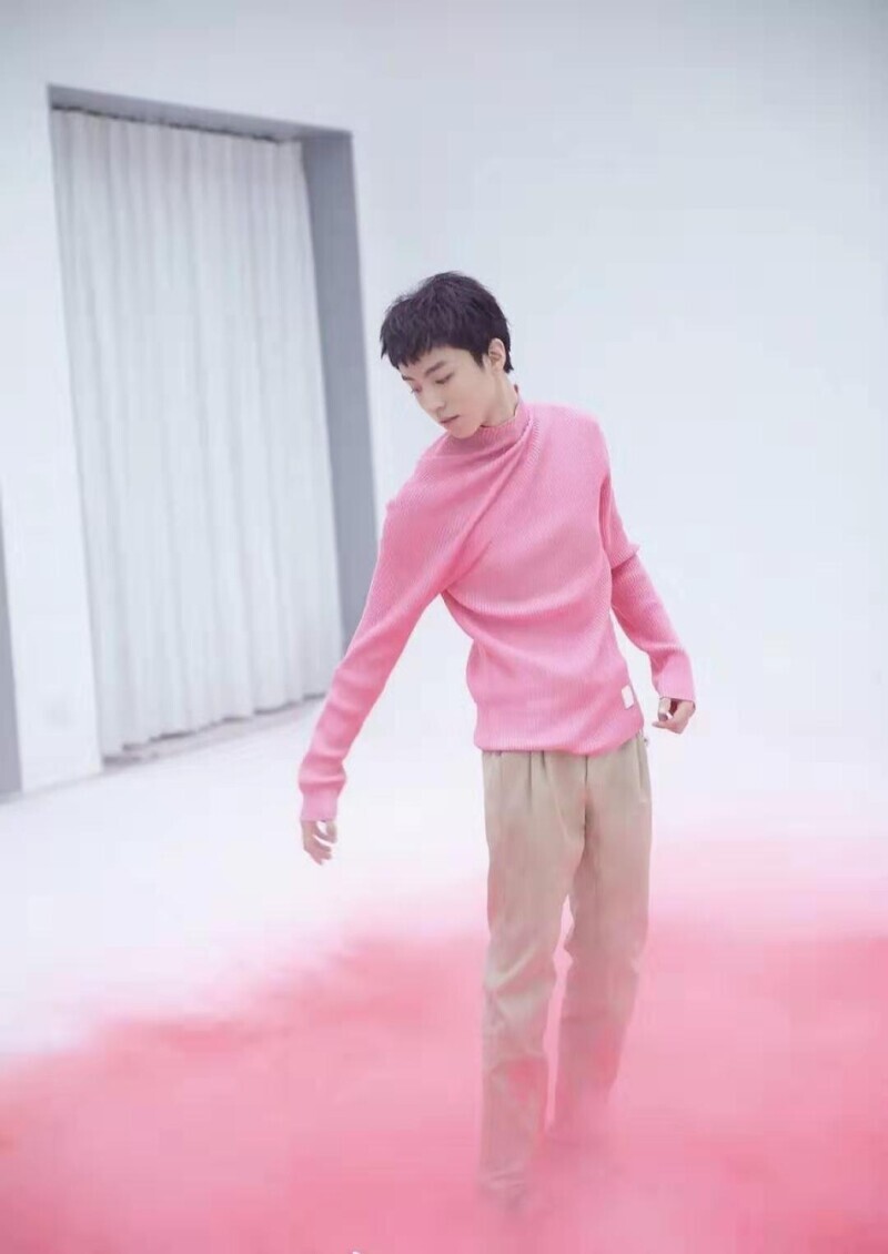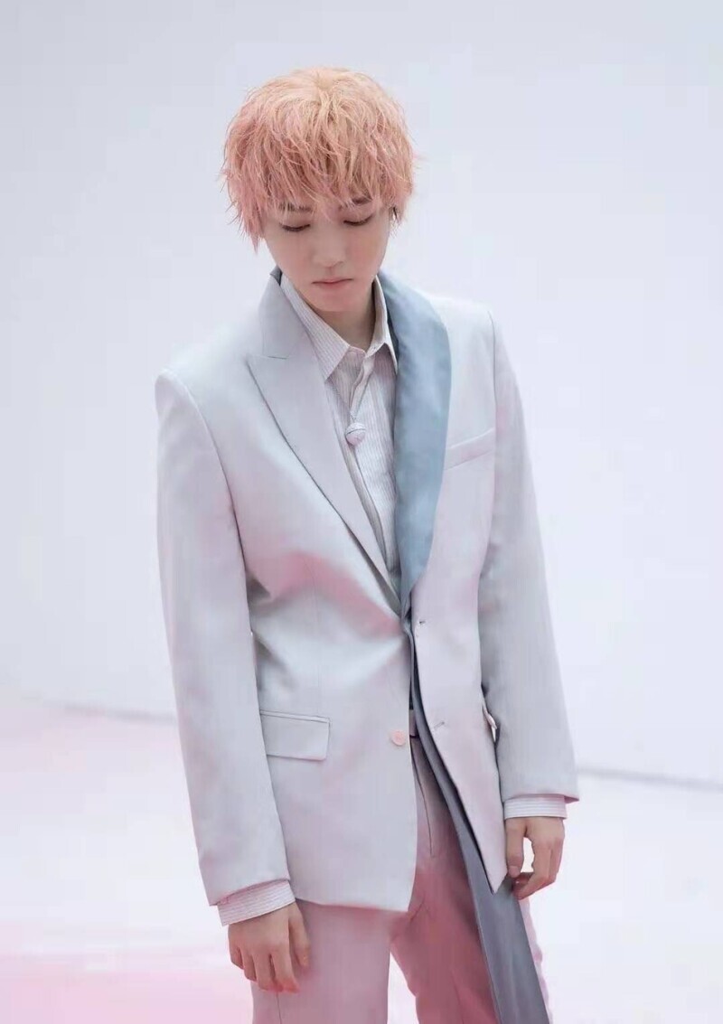 王俊凯最新大片曝光 橘粉色头发搭配淡蓝西装造型大胆