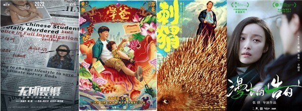 据公告, 2022年到2023年,欢喜传媒将有多部电影将陆续在院线上映。其中包括:苏亮编剧及执导、黄渤主演的电影《学爸》;宁浩执导、刘德华主演的《红毯先生》(前称《全民明星》);陈可辛执导的《独自上场》;张艺谋执导的《满江红》;顾长卫执导,葛优及王俊凯主演的《刺猬》;陈大明执导,张涵予主演的《无所畏惧》;王小帅监制的《上山》;陈佩斯执导,陈佩斯及陈大愚主演的《戏台》;李阳执导,张若昀及钟楚曦主演的《从21世纪安全撤离》;张律执导,倪妮及张鲁一主演的《漫长的告白》;以及张国立执导及编剧,周冬雨主演的《朝云暮雨》等。